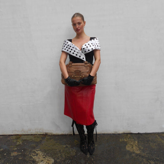 Red Leather Midi skirt