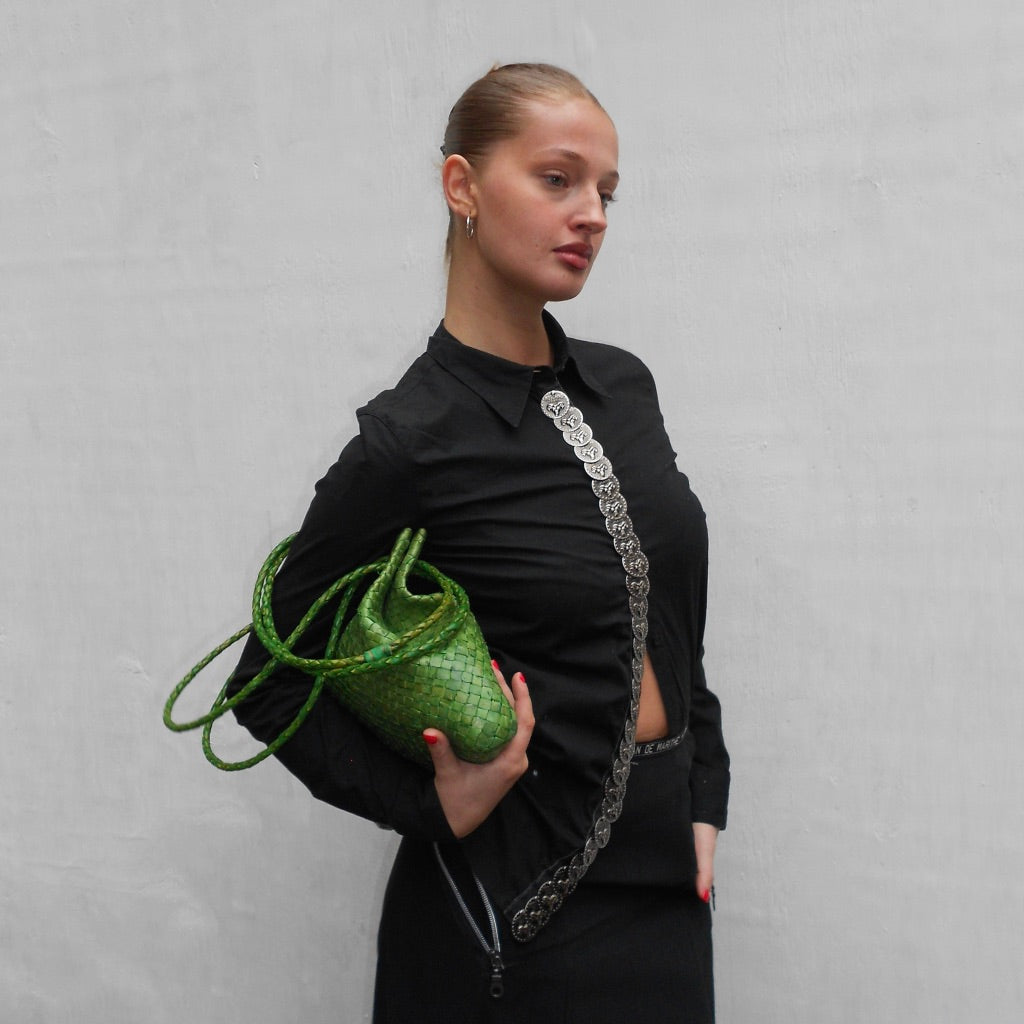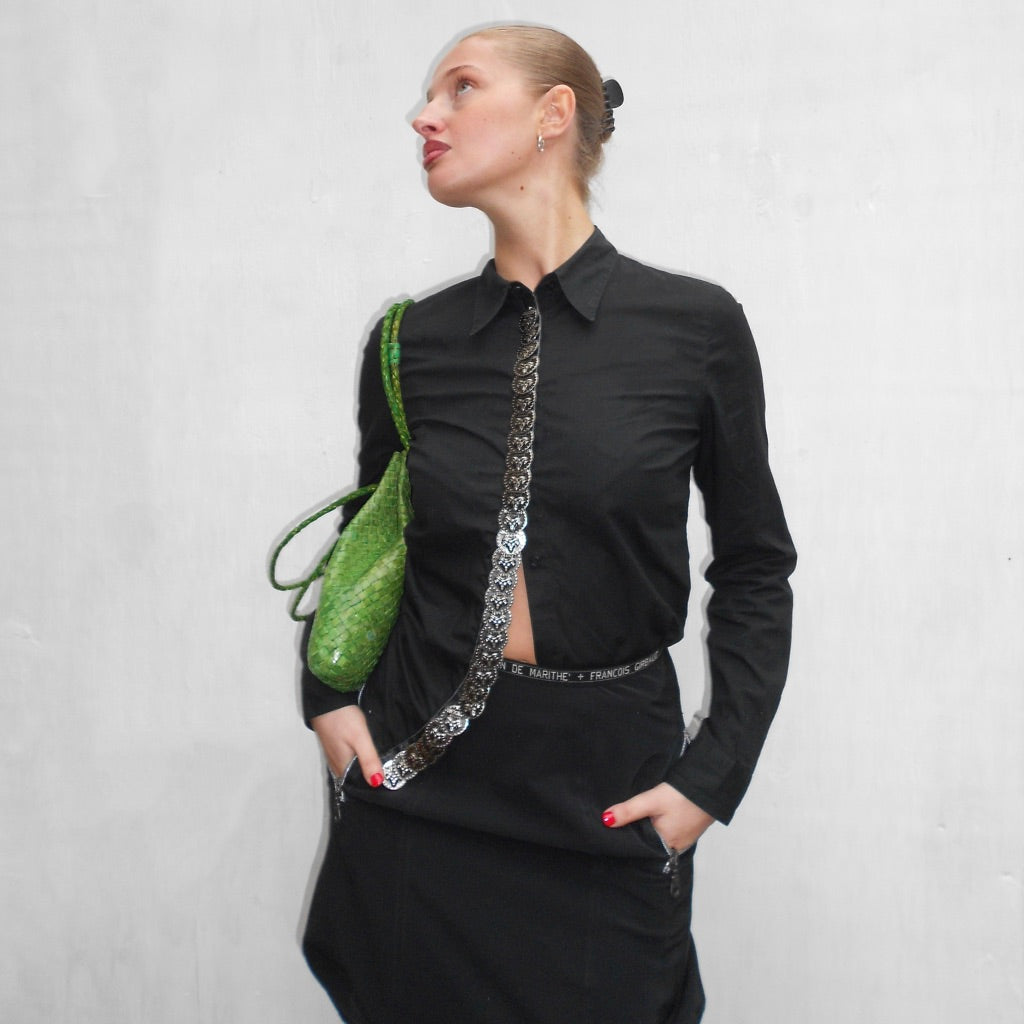 - Silver ram buttons down the front